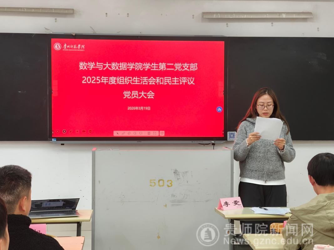 3月19日,数学与大数据学院学生第二党支部在致远楼406教室召开2025年度组织生活会,并同步开展民主评议党员工作。会议由党支部书记李雯主持,全体党员参加会议。
