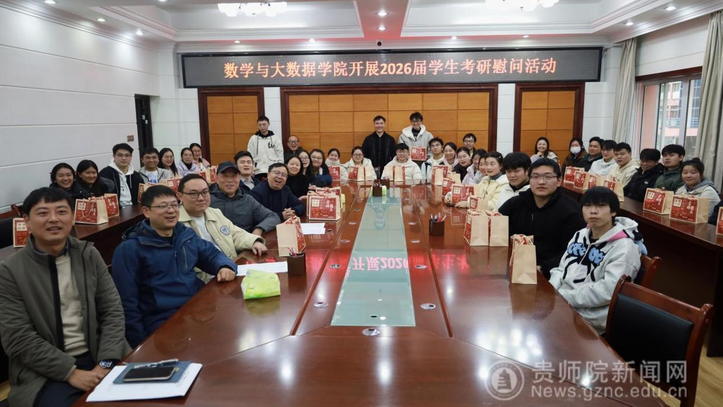 此次慰问活动不仅是学院关爱学子的生动实践,更是凝聚师生情谊、赋能冲刺备考的务实之举,让考研学子在寒冬中感受到浓浓暖意,为他们注入了坚定前行的强大动力。愿数学与大数据学院的考研学子们,带着学院的关怀与祝福,以笔为剑、以梦为马,在即将到来的考试中乘风破浪、不负韶华,成功抵达理想彼岸,书写人生崭新篇章!