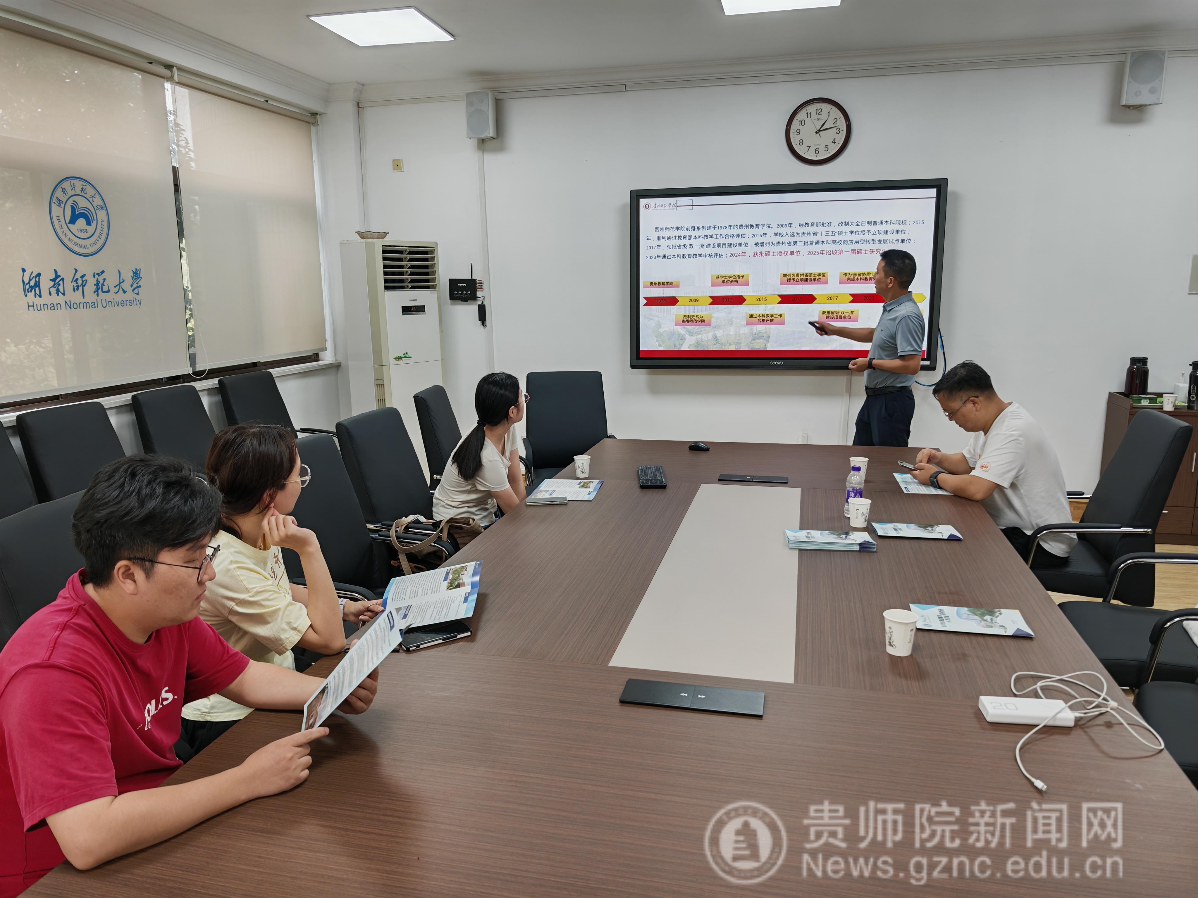 10月11日,数学与大数据学院院长熊伟程、数学系主任仲崇轶一行到湖南师范大学数学与统计学院开展高层次人才引进宣讲活动,湖南师范大学数学与统计学院相关专业博士生参加本次宣讲会,熊伟程进行宣讲。