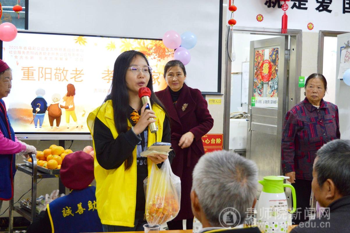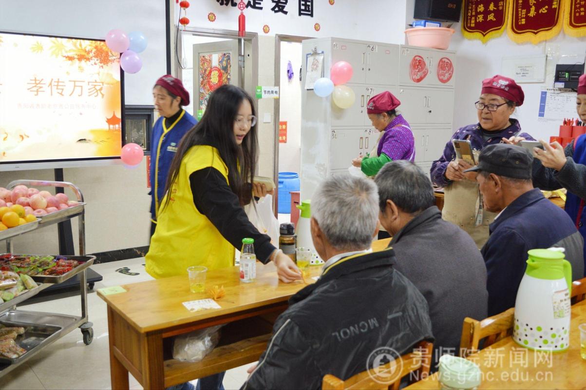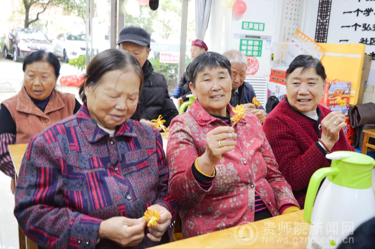 为弘扬中华民族尊老敬老传统美德,践行社会主义核心价值观,10月29日重阳节,贵州师范学院丽琼工作室联合非遗文创协会组织学生志愿者,前往乌当区免费素食餐厅开展“重阳溯俗承文脉,捻彩缠花暖耆心”主题志愿活动。