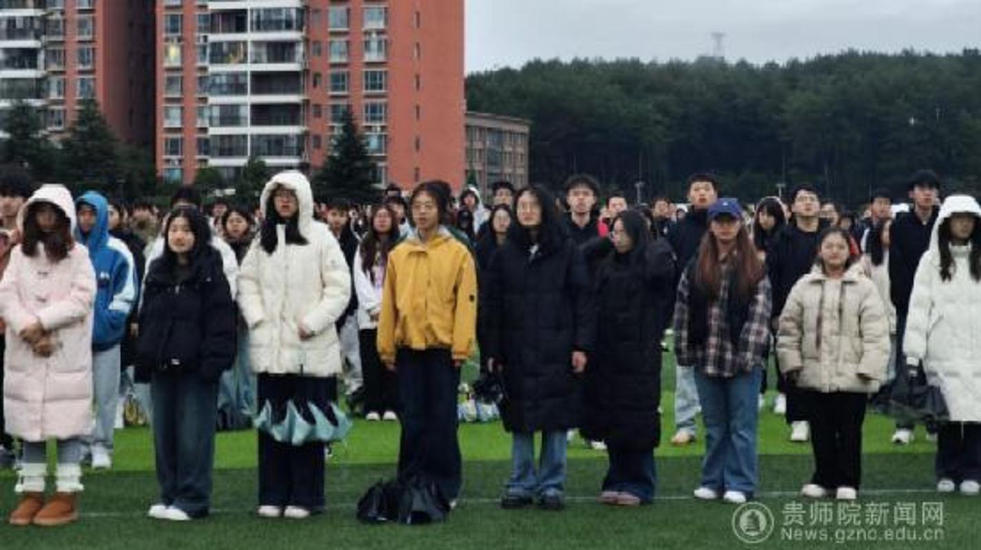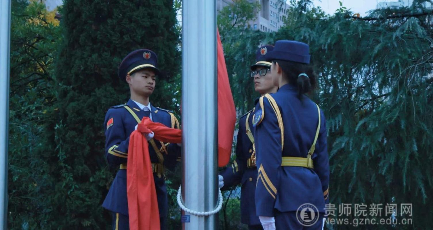 为弘扬爱国精神,11月10日,贵州师范学院数学与大数据学院(以下简称“数大学院”)于田径场举行升旗仪式,2025级各班学生参与本次活动。