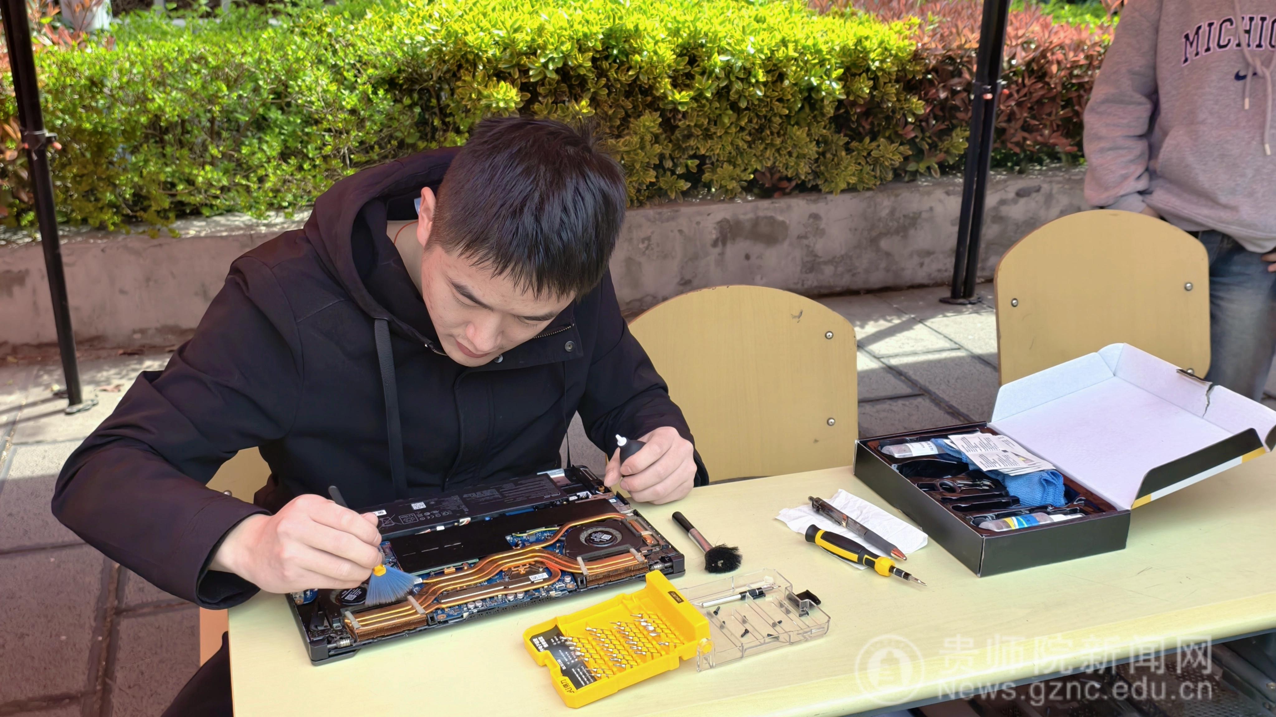 活动现场气氛热烈,秩序井然。本次志愿服务涵盖电脑清灰、系统重装、软件调试等多项内容,精准对接同学们在学习生活中的实际需求。为提升活动互动性与趣味性,现场还设置了集赞抽奖环节,有效调动了同学们的参与热情。