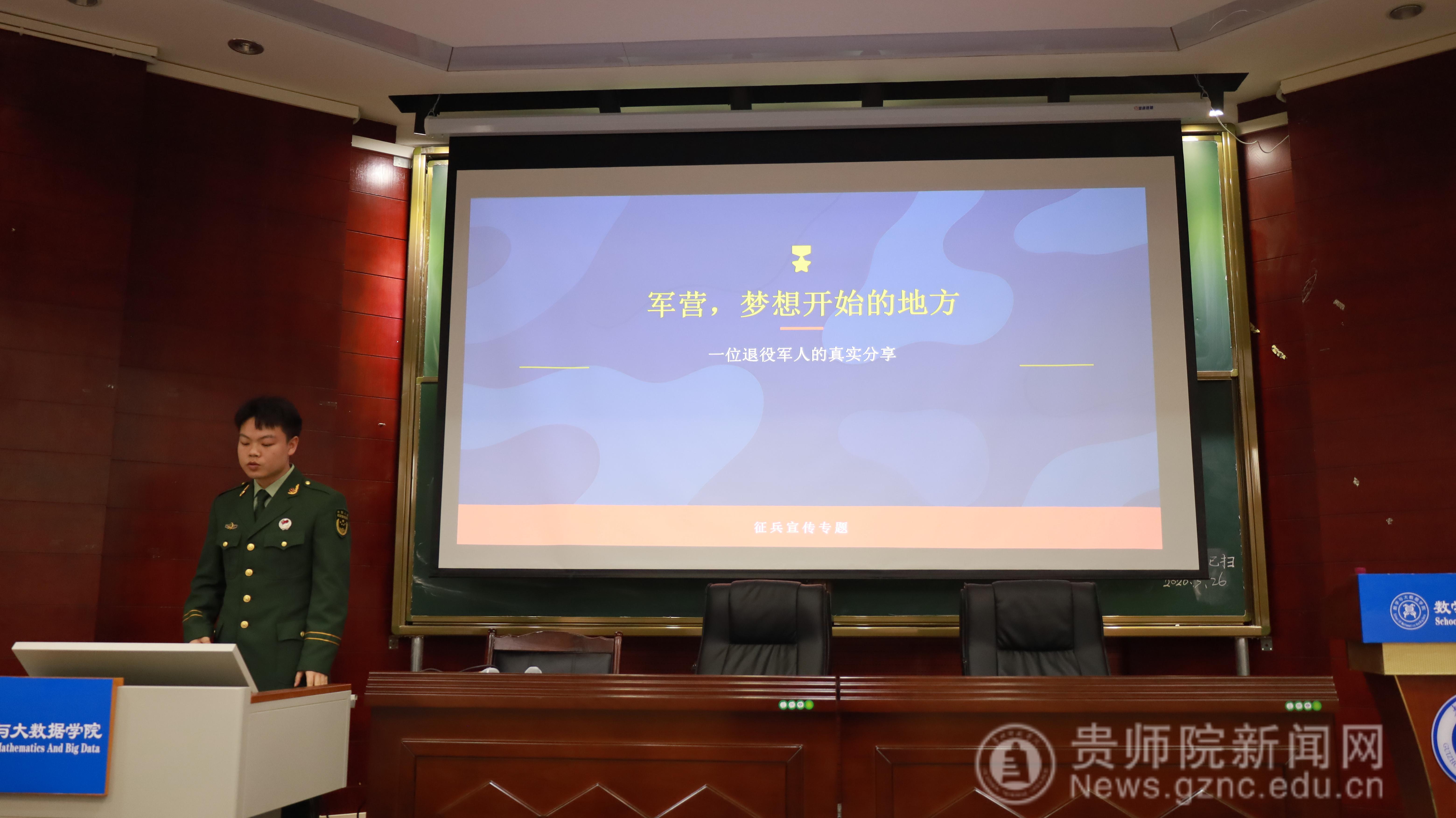 为深入贯彻落实国家征兵政策,激发青年学子参军报国的热情。3月27日,一场主题鲜明、内容丰富的征兵宣传讲座在宁静楼151顺利举行。本次宣讲会由令狐蓉老师主持,学院党委副书记于治麟出席,特邀两位退伍军人分享军旅生涯,2022级、2023级适龄男生参加。