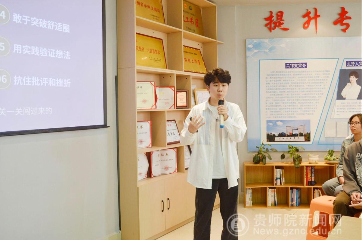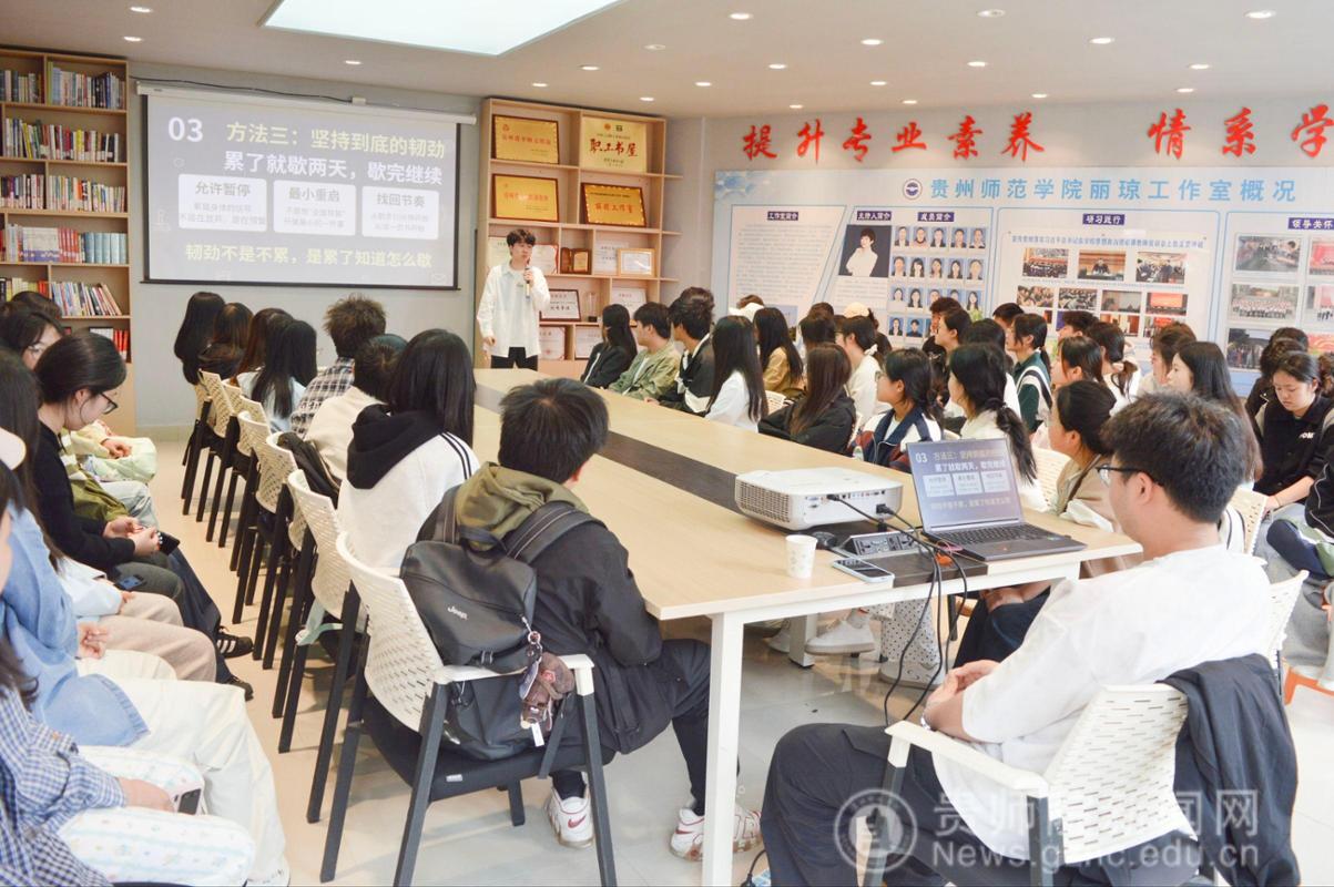 4月17日,由贵州师范学院丽琼工作室主办的“不负青春凌云志,创新敢为众人先”主题成长分享讲座在兰园一楼顺利举办。工作室主持人谭丽琼出席活动,70余名学生到场参与学习交流。